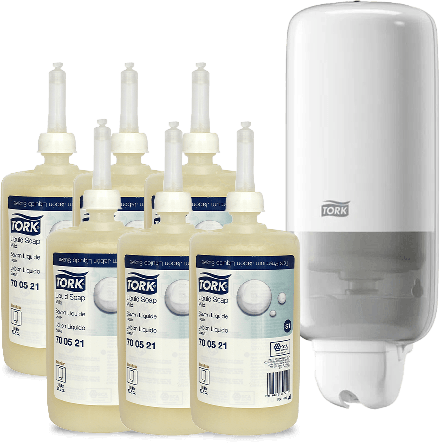 Kit: 1 Dispenser Branco + Sabonete Líquido Tork Suave 6 frascos